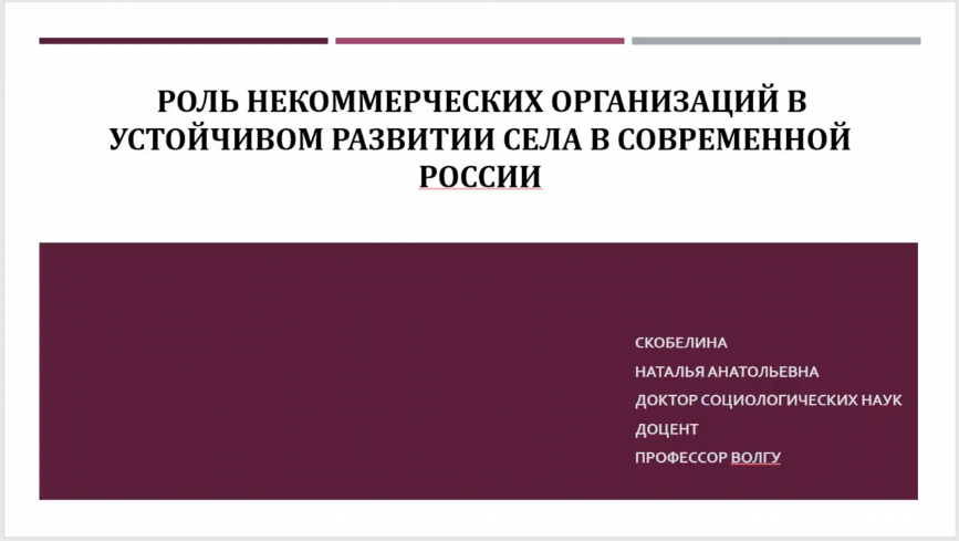 Professor Skobelina Natalya Anatolyevna from Volgograd State University of Russia, Sociology, and Socio-technology, presented the role of non-profit organizations in the sustainable development of contemporary Russian villages. She pointed out that the Russian government has been supporting the non-profit organization sector since 2000, mainly in terms of establishing the Federation of Agricultural Associations, granting agricultural subsidies to develop agriculture, receiving subsidized preferential loans for renting premises, and motivating young people to return to their hometowns after their studies to develop the countryside. With the support of the state, non-profit organizations play an important role in rural development with significant results.
