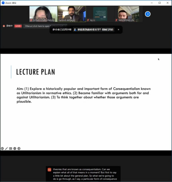 I feel very lucky to be able to participate in these courses. I am exposed to more methods and perspectives of ethics research, which makes me excited. At the same time, the discussion with the Doctor and my classmates and the answer to my doubts by the doctor prompted me to make deeper thinking. Doctor led us to discuss what we actually do when we doing ethics and how it should be done, which made me enjoy the pleasure of learning ethics.