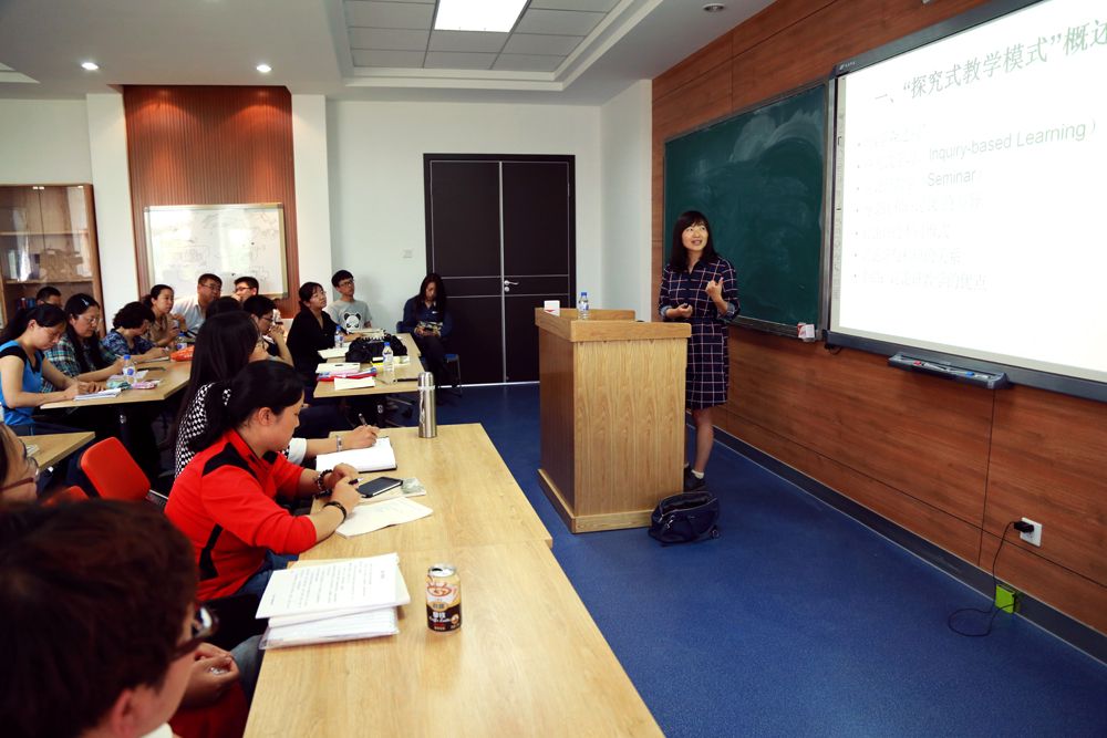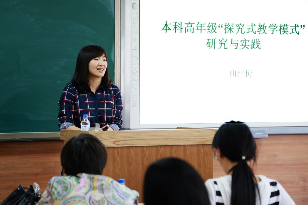 曲红梅教授做了题为“本科高年级‘探究式教学模式’研究与实践”的教学工作坊。