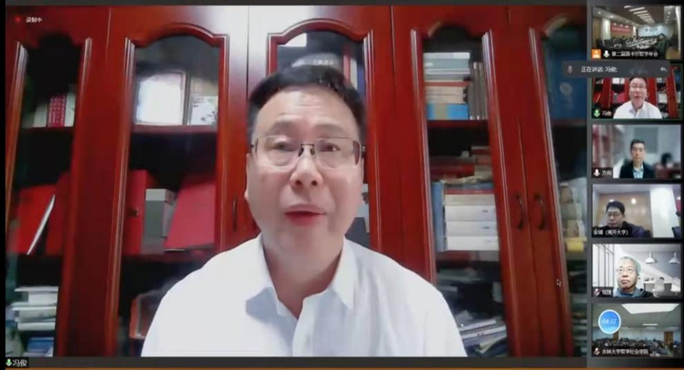 的赵雄峰老师、南开大学哲学院的安靖老师分别代表第十届法国哲学年会、第二届笛卡尔哲学年会的承办方致辞,感谢各方对“两会”成功举办的大力支持。浙江大学哲学学院的马迎辉老师和武汉大学哲学学院的郝长墀老师分别代表下届法国哲学年会和下届笛卡尔哲学年会的承办方发言,相邀下届年会。大会最后,“两会”副主任钱捷老师作总结发言,钱老师认为,在疫情影响下,“两位”仍有近七十位专家学者发言,体现了汉语法国哲学研究和笛卡尔哲学研究是在不断发展壮大的;从参会学者的年龄构成来看,青年学者占了绝大多数,这昭示了法国哲学研究朝气蓬勃、欣欣向荣的景象;从研究主题来看,本届法国哲学年会最大的特点是研究主题和人物范围有明显扩大,有关社会哲学、艺术主题的论文明显增加,这体现了当代法国哲学的固有风貌。最后,主持人宣布“两会”胜利闭幕。(庞英杰供稿)