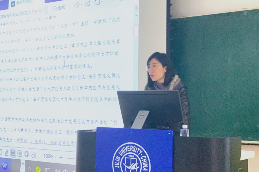 贾玉娇教授的讲授共分为学术不端的底线、治学的道德与修养、学术人生的境界三个部分。首先,贾老师重点论述了学术不端的底线问题。通过列举一些剽窃、抄袭论文的例子,贾老师强调学术不端不仅有损个人形象更会有损中国在国际上的学术口碑,告诫同学们:科研没有捷径,只有在量的不断累积中才能导致研究上的质的变化,从而走上科研的康庄大道。