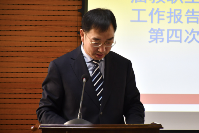 接着,副院长、学院工会主席朱文君以《职工至上,热心服务,共建美丽之家》为题作工作报告和财务报告。他梳理了近年来工会所取得的优秀成绩,指出工会在创新、品牌塑造等方面存在的不足,提出加强民主建设与队伍建设、注重素质提升、做好维权帮扶,通过不断凝聚人心、鼓舞干劲、激励斗志为学院“双一流”建设和发展而努力奋斗。同时他也向与会代表作了工会委员会财务报告,对过去五年间工会的支出及收入的详细情况进行了介绍,并表示工会的开支严格遵循有关规章制度,无违纪问题。