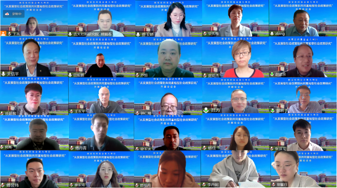贾玉娇教授担任首席专家的国家社科基金重大项目“从发展型社会政策到共同富裕型社会政策研究”通过视频会议的形式举行了开题论证会。开题论证专家组由南开大学周恩来政府管理学院、中国社会学会社会政策专委会会长关信平教授、海角视频