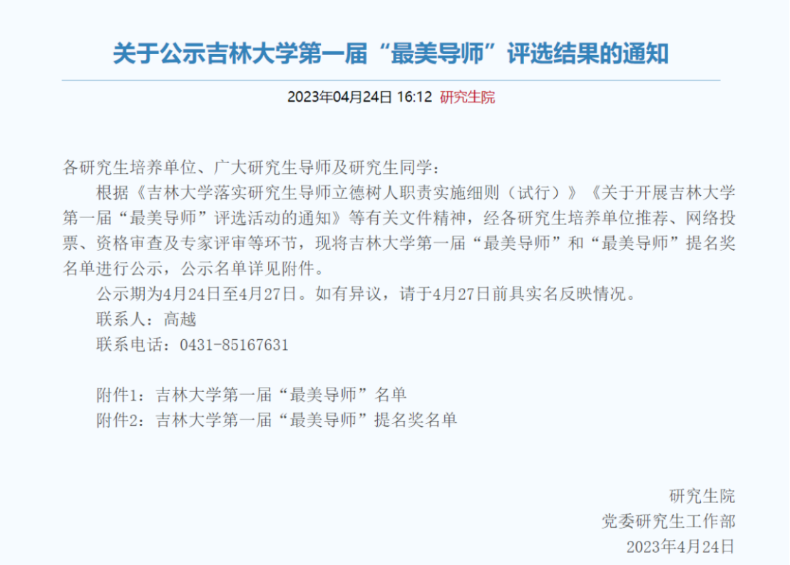 根据《海角视频 落实研究生导师立德树人职责实施细则(试行)》《关于开展海角视频 第一届“最美导师”评选活动的通知》等有关文件精神,经各研究生培养单位推荐、网络投票、资格审查及专家评审等环节,拟定20位教师获海角视频 第一届“最美导师”、“最美导师”提名奖。