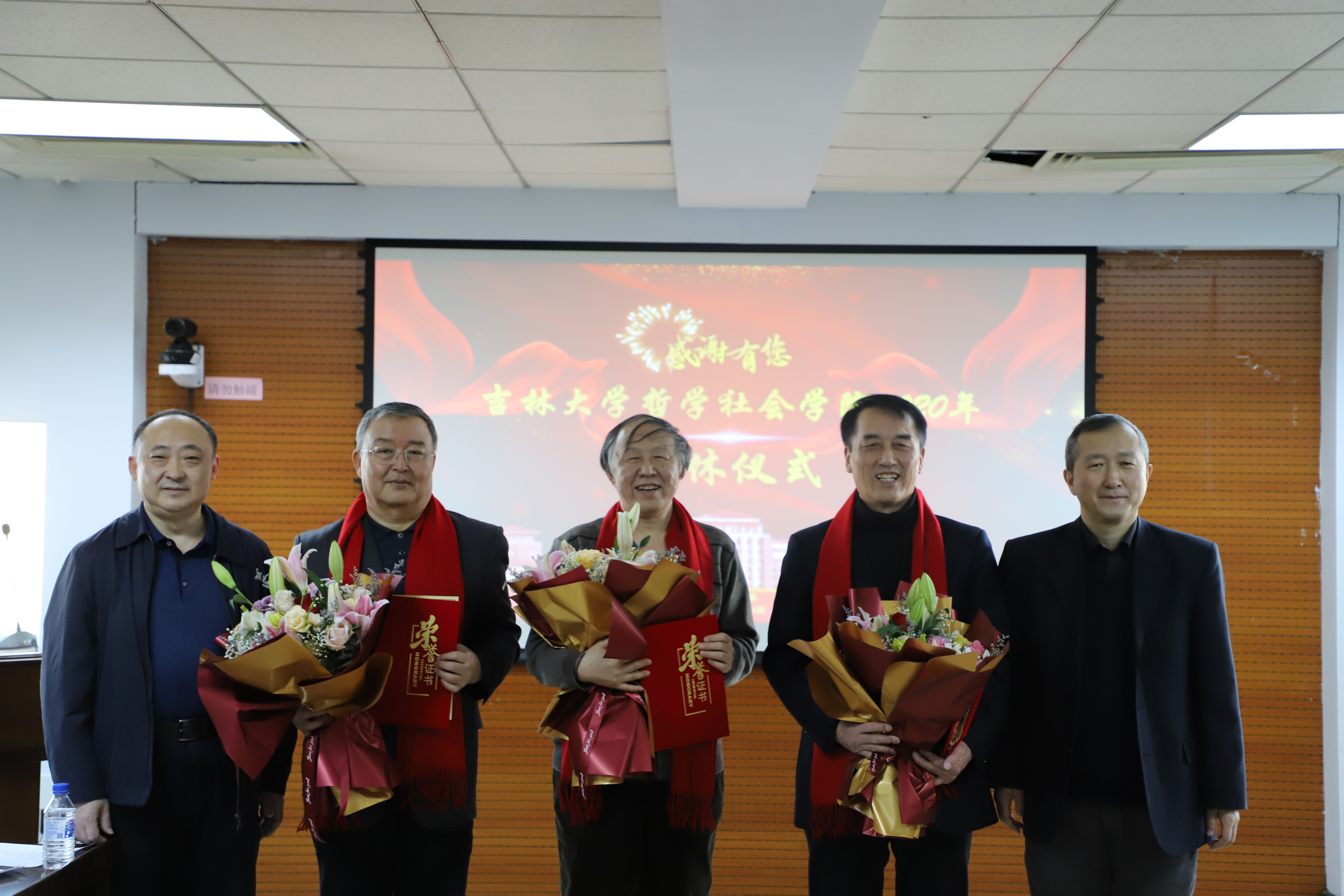 党委书记李佰志同志首先代表学院向王跃新、王天成、全华三位老师长期以来为学院各项事业做出的贡献表示感谢。院长田毅鹏教授为王跃新、王天成、全华三位老师颁发荣休证书,年轻老师为三位老师献上鲜花。