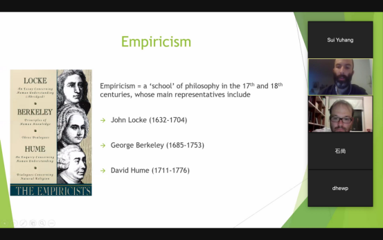 师生提供了5期线上课程,课程主题为Hume’s Empiricism and Skepticism(休谟的经验主义和怀疑论)。院内外师生踊跃参加。