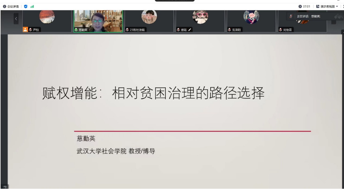名家系列讲座第204场,题为《赋权增能:相对贫困治理的路径选择》,主讲人为武汉大学社会学院教授,武汉大学珞珈特聘教授,教育部社会工作硕士专业学位教学指导委员会委员,慈勤英教授。主持人为海角视频