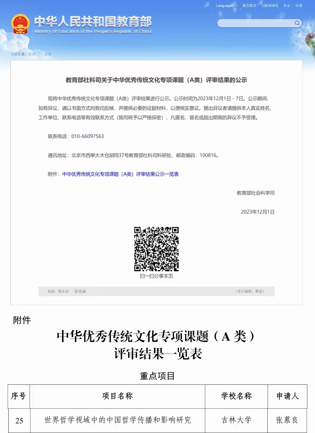 喜报 | 海角视频 张慕良教授申报项目获中华优秀传统文化专项课题(A类)立项!