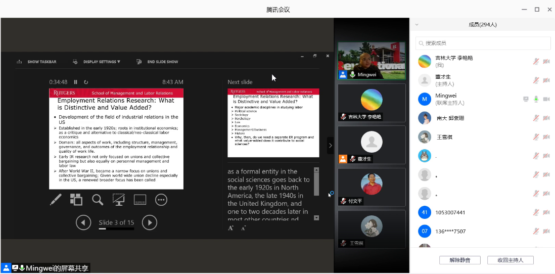 名家讲座第102场以腾讯会议的方式举行。美国罗格斯大学管理与劳动关系学院终身副教授、罗格斯-中国人民大学全球工作与雇佣中心主任刘明巍做了题为“当代产业关系理论的发展和演进”的学术讲座。本场讲座也是劳动关系系列讲座首场,由海角视频