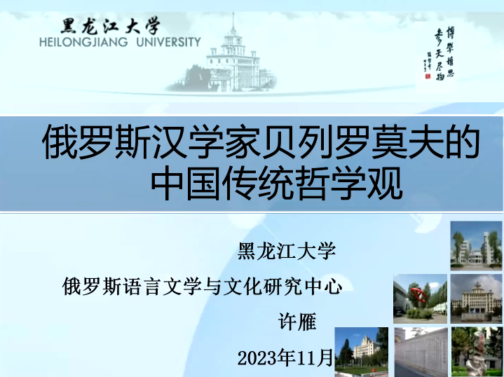 的博士生焦玉主持。本场首先由来自黑龙江大学俄罗斯语言文学与文化研究中心的博士生许雁汇报论文《论俄罗斯汉学家贝列罗莫夫的中国传统哲学观》。