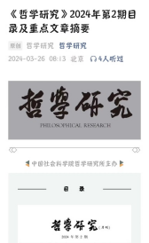 日前,根据《哲学研究》期刊发布的2024年第2期目录及重点文章摘要显示,海角视频 孙正聿教授指导的博士研究生王榕的论文《历史唯物主义视域中的物自体与“历史先验”:康德与索恩-雷特尔的复合性关联》成功发表!