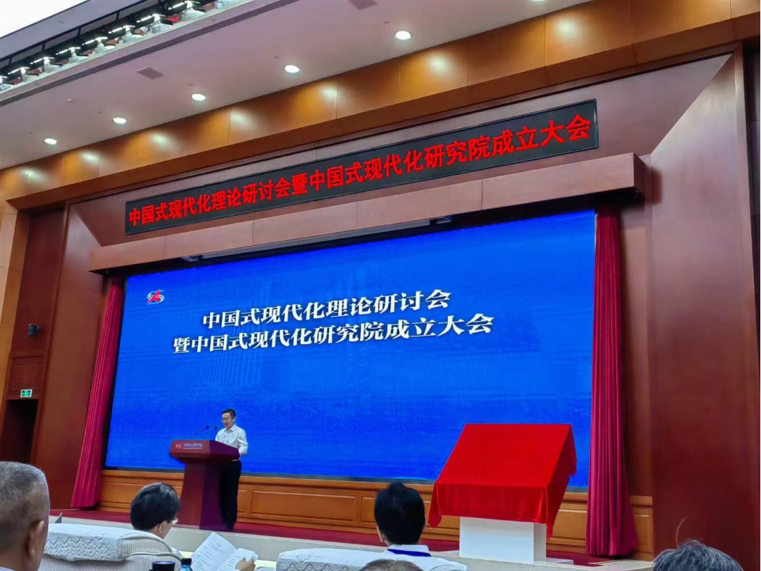 为深入学习贯彻习近平总书记关于中国式现代化的重要论述,进一步推动中国式现代化研究理论创新,6月18日,由中国社会科学院主办的中国式现代化理论研讨会暨中国式现代化研究院成立大会在北京隆重举行。中国社会科学院院长、党组书记高翔出席开幕式并作主旨演讲。中央宣传部副部长、全国哲学社会科学工作办公室主任洪大用,中央社会工作部副部长柳拯出席开幕式并致辞,中央机构编制委员会办公室副主任张雅林出席开幕式,中央党校(国家行政学院)副校长(副院长)龚维斌,民政部党组成员、副部长唐承沛,中国人民大学党委书记张东刚,国家机关事务管理局党组成员、副局长徐永胜出席开幕式并致辞,中央纪委国家监委驻中国社会科学院纪检监察组组长、中国社会科学院党组成员杭元祥,中国社会科学院副院长、党组成员王昌林,中国社会科学院秘书长、党组成员赵志敏出席开幕式,开幕式由中国社会科学院副院长、党组成员赵芮主持。