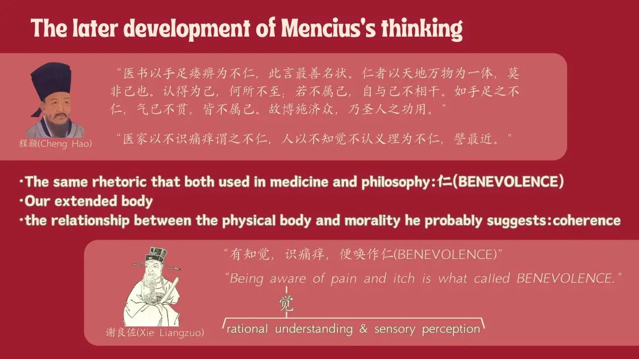 在西方理性主义的哲学传统下,以柏拉图和康德为典型代表的哲学家们常认为,道德的实现需要摆脱经验性的肉体欲望和情感,由形上的理性心灵发挥决定作用。但在中国哲学中,身心问题不是分而言之的,道德的呈显往往诉诸于具体生活情境中难以遏制的情感,这种情感体验又具有生动、鲜活、切身的特点。由孟子以“孺子将入于井”的例子指点“恻隐之心”,到宋明儒学家以“识痛痒”论“万物一体”,儒家哲学中,道德与身体紧密地交织在一起,为问题的解决提供了一种新的思路。