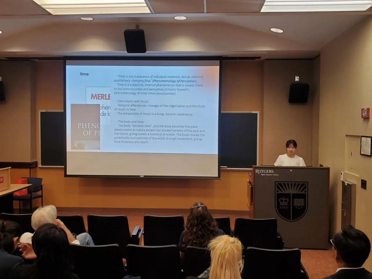 本次汇报以《音乐、身体知觉与时间意识》(Music, Body Perception and Time Awareness)为探讨主题。音乐作为一种时间的艺术已经被大家公认,但因此关注音乐作为一种符号形式实现表达,常常忽略了人如何通过“身体”的感受达到对音乐符号的时间性展开的认识。这里,我们基于梅洛-庞蒂知觉现象学等内容,分析身体体验在时间生成与音乐理解中如何发挥作用,使音乐与人发生关系并成为既有意义而又不可言喻之物。