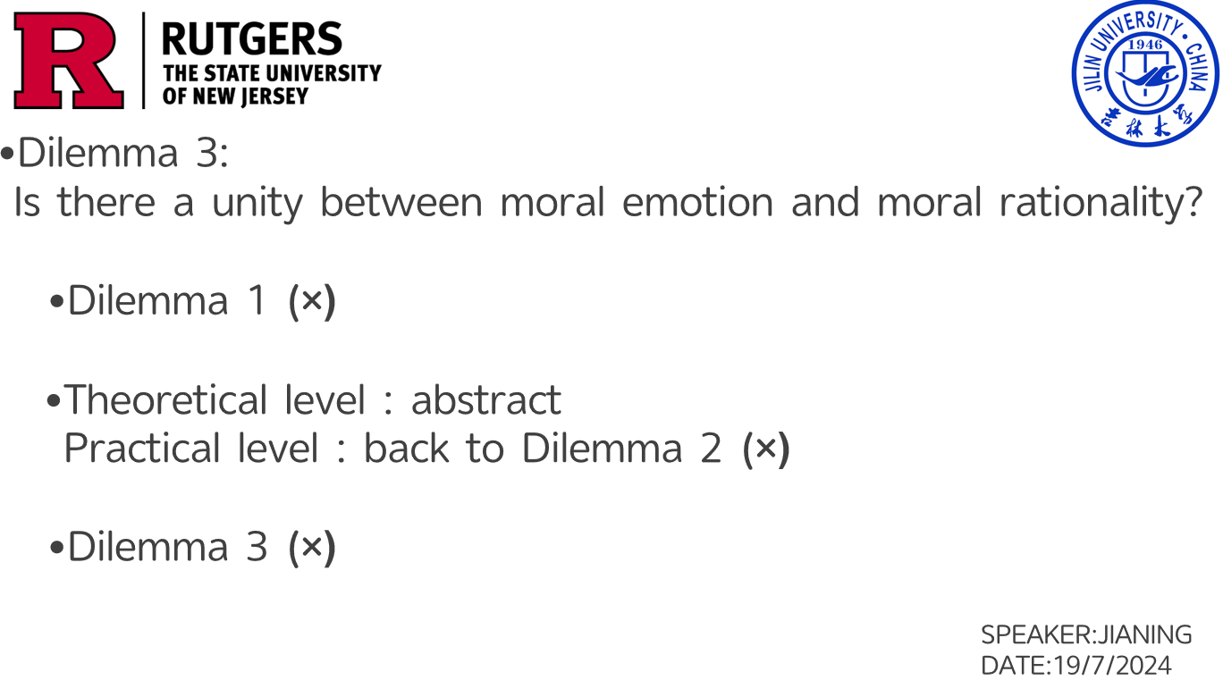 本次展示聚焦于电车难题这一经典道德悖论,深入剖析了在极端伦理抉择场景下,道德情感与道德理性之间的激烈碰撞。通过细致分析,揭示了两者在复杂决策过程中的难以调和性,凸显了情感驱动的即时反应与理性审视的长远考量之间的根本冲突。进一步,论述强调了道德判断中情感与理性平衡的微妙与复杂,指出这一平衡点的缺失如何构筑起一个自我循环的道德困境,持续考验着道德哲学关于善恶评判、责任归属及行为正当性等核心理论框架的稳固性。