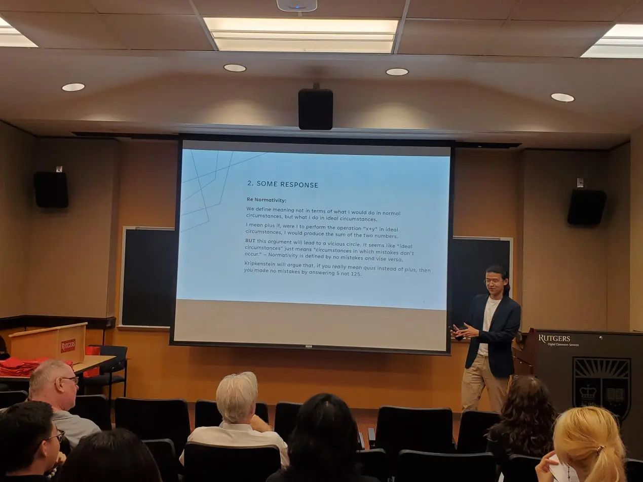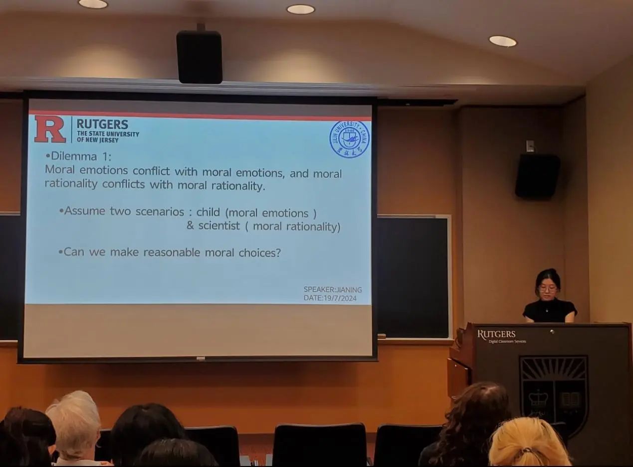 此后,两校教师、校领导发表讲话。罗格斯大学全球事务助理副校长Ji-Yeung Jang博士肯定了两校哲学学术交流的成果,表示自己对关于人生意义的哲学问题非常感兴趣,两校的哲学暑期交流活动十分有意义。