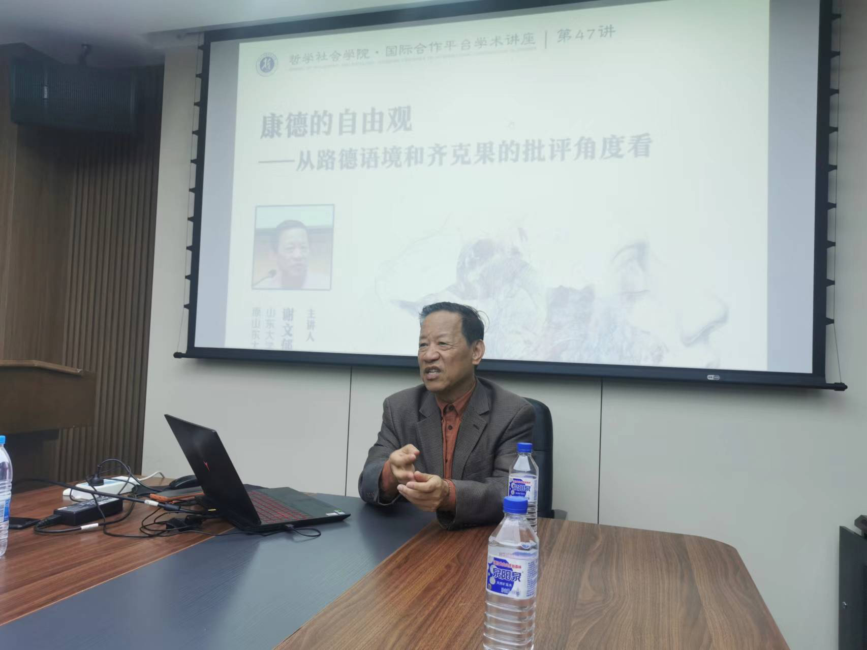 “国际合作平台学术讲座”第47讲——“康德的自由观——从路德语境和齐克果的批评角度看”在东荣大厦908会议室举办。本期讲座由山东大学哲学系谢文郁教授主讲,讲座由盛传捷副教授主持。中山大学哲学系江璐副教授、海角视频