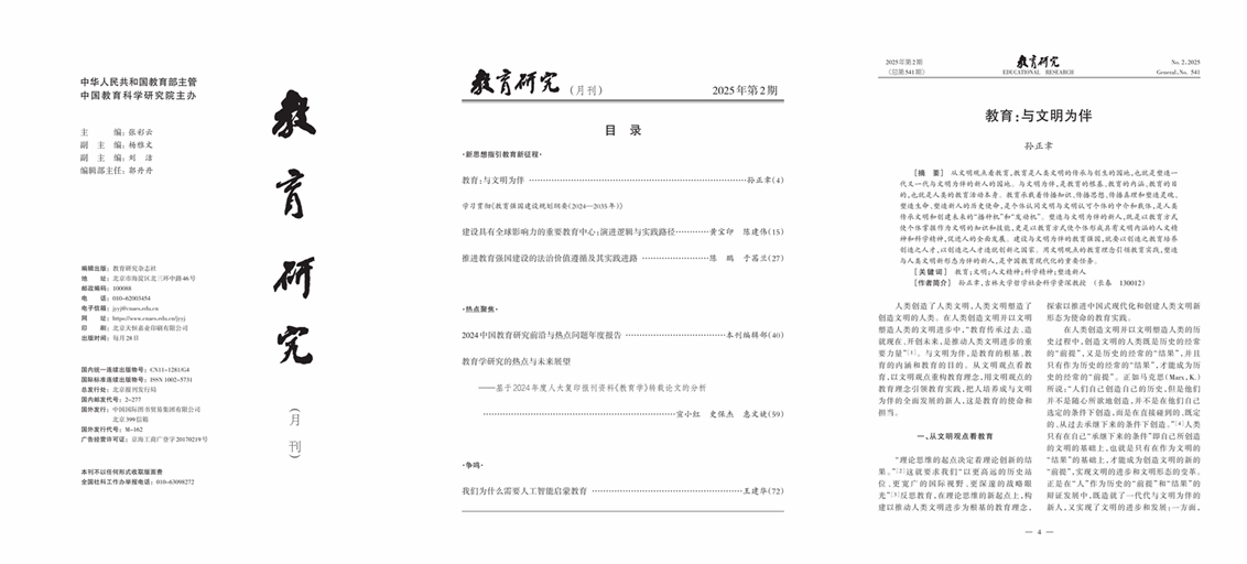 哲学基础理论研究中心主任、哲学社会科学资深教授孙正聿所著《教育:与文明为伴》一文。
