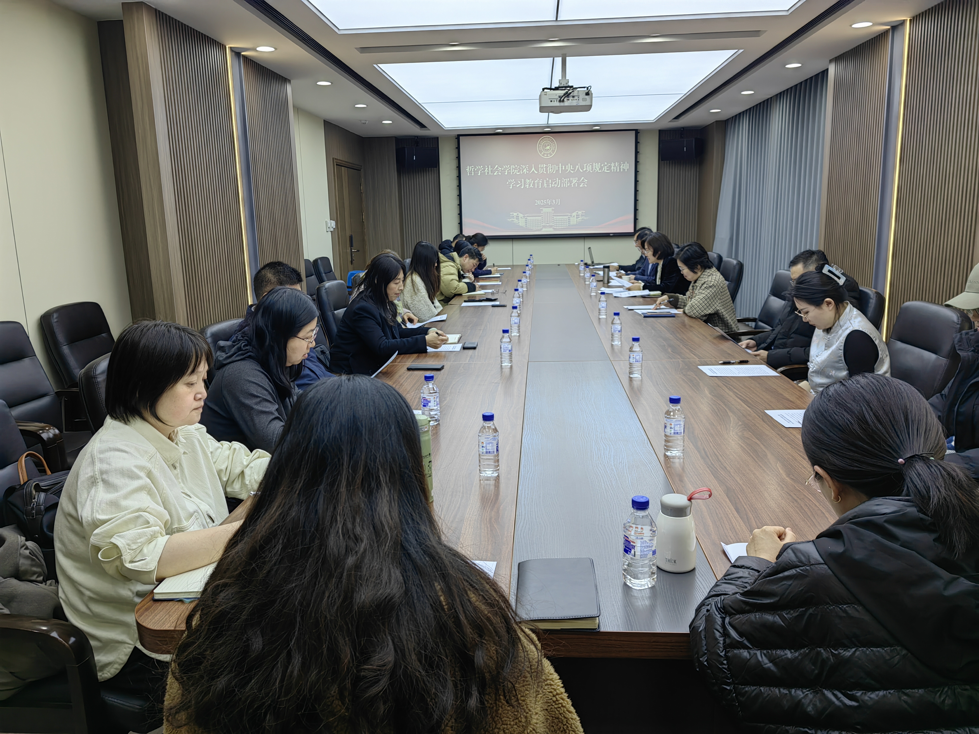 会议结束后,学院党委理论学习中心组学习扩大会随即开展理论学习,认真学习了中央政治局关于改进工作作风、密切联系群众的八项规定及其实施细则。