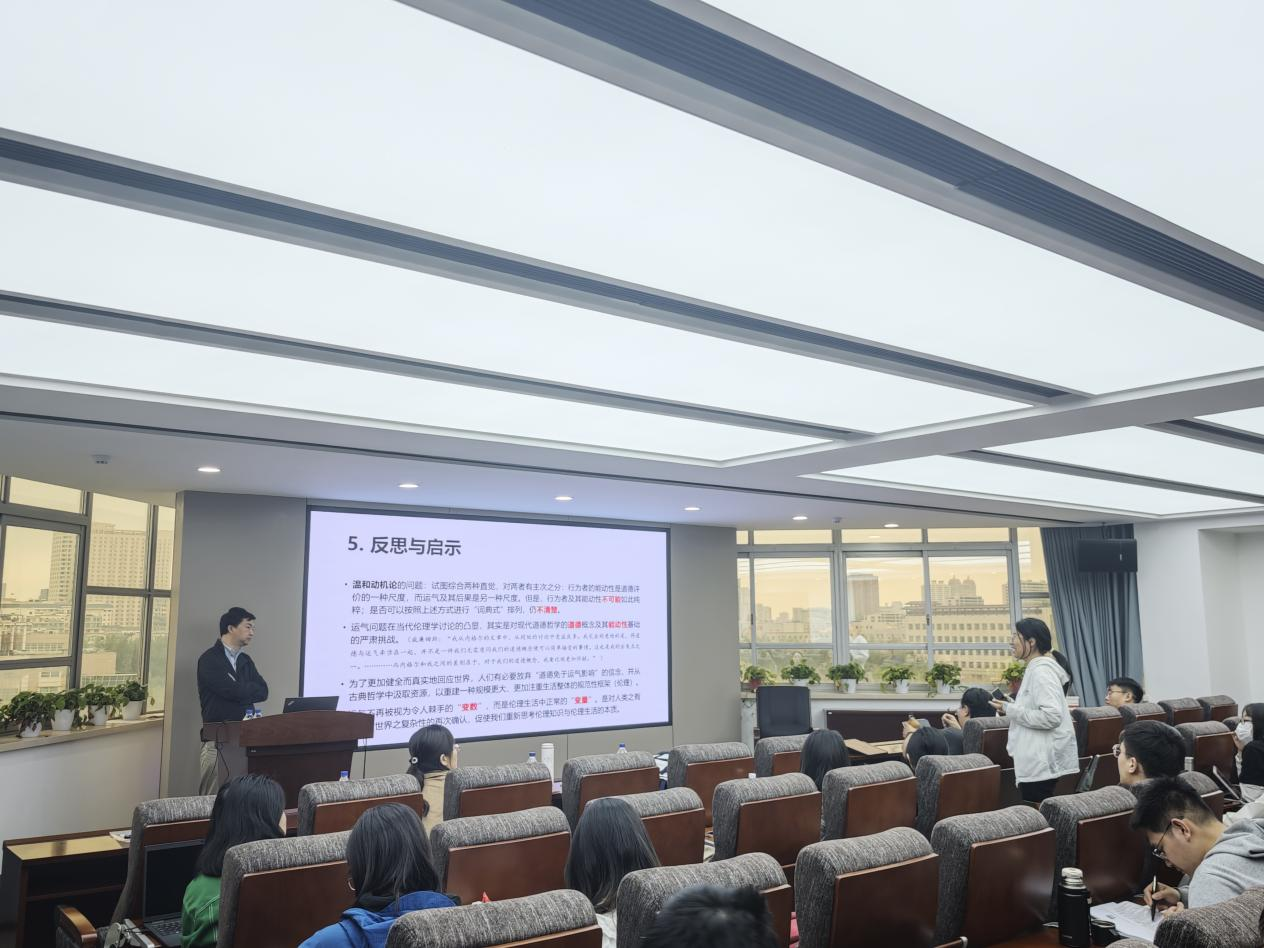 在讲座的结尾,曲红梅教授就近期李义天教授四次系列讲座进行了总结,认为“长时段”与“人世间”从历史与政治的维度正面揭示了当代伦理学研究的重要元伦理方法,对现代道德哲学的“心理科学基础”与“道德运气问题”的考察则从侧面提醒我们:要根植于自然科学的进展与真实的伦理生活,以对现代道德哲学的反思为起点从事当代伦理学研究。再次代表师生对李义天教授表达感谢后,曲红梅教授进一步叮嘱同学们不仅要汲取系列讲座中学术知识,更要学习李义天教授精益求精的学术态度和一丝不苟的科研精神。在师生交流的热烈氛围中,本场讲座圆满落幕。