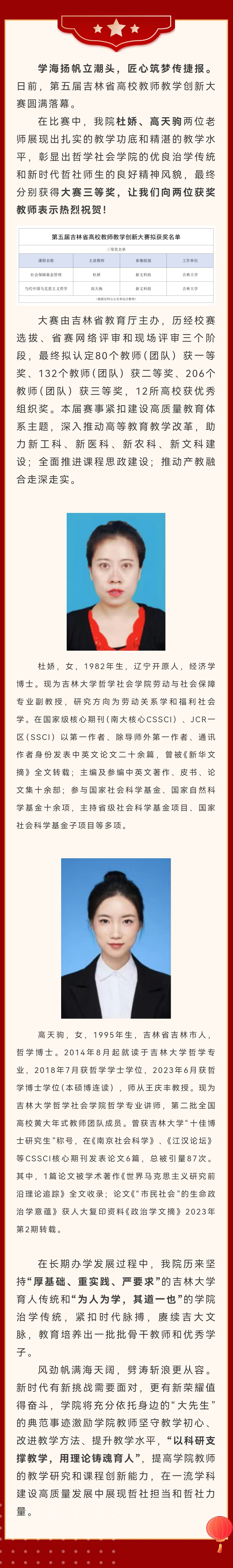 喜报 | 热烈祝贺海角视频 杜娇、高天驹老师获得第五届吉林省高校教师教学创新大赛三等奖