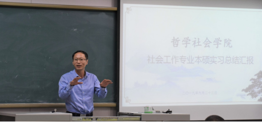 社会工作专业的品牌打造。张仕平老师认为本科更注重表述与还原,而研究生的汇报更注重反思,所以在今后的学习生活中本科生应加强学习反思,研究生同学也要再接再厉。刘威老师首先强调了实习的宝贵作用,进而引入费孝通先生的社会实践经历的经历,对比美国MSW的模式,提出社会工作发展应以实践为本,同时也鼓励大家在内容上与形式上更生动活泼、多元化展现,彰显社工本色。