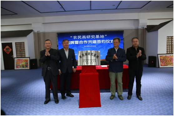 院长田毅鹏、党委书记全华,东丰县县委副书记王兆卿、县委常委宣传部部长吴志国、县政府副县长孙立强等13人出席揭牌仪式并签署了进一步合作的相关协议。揭牌仪式由东丰县委常委宣传部部长吴志国主持,农民画馆领导和部分东丰县农民画创作骨干共计50人参加。