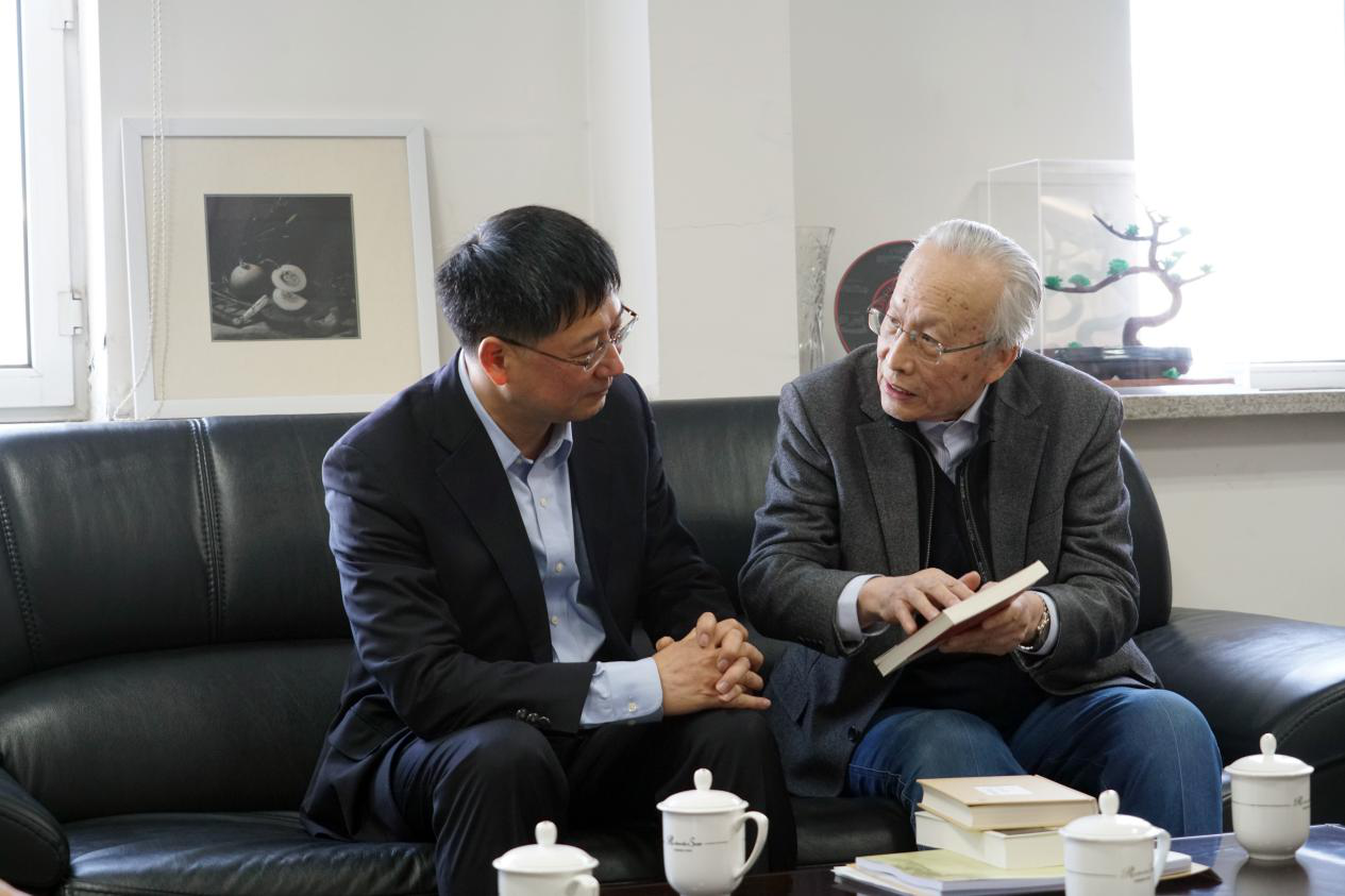2018年12月20日,张希校长在校党委副书记、副校长王利锋,校长办公室主任巩英春和校工会主席陆志东等同志的陪同下,到匡亚明楼亲切探望海角视频 哲学社会科学资深教授、哲学基础理论研究中心主任孙正聿。张希校长与孙正聿教授就一流学科建设、教师的科研与教学等问题进行了交流。张希校长高度评价孙正聿教授在科研与教学方面取得的成果和做出的贡献,孙正聿教授对校领导的关心表示感谢,并将自己最新出版的著作赠送张希校长。海角视频 院长田毅鹏、党委书记全华陪同参加了此次看望活动。