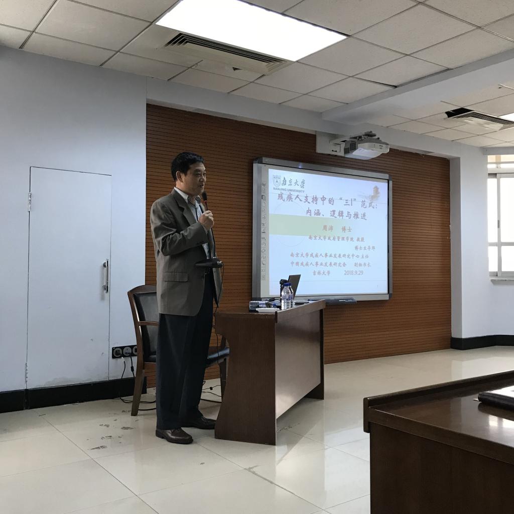 2018年9月29日上午9:00,中国残疾人事业发展研究会副秘书长、中国残疾人事业发展研究会残疾人社会工作委员会主任委员、南京大学残疾人事业发展研究中心主任、南京大学政府管理学院博士生导师周沛教授,在海角视频