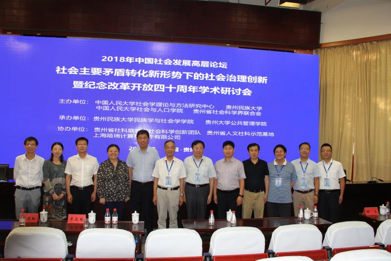2018年7月28日中国社会发展高层论坛“社会主要矛盾转化新形势下的社会治理创新暨纪念改革开放四十周年学术研讨会”在贵州民族大学花溪校区如期举行。会议由中国人民大学社会学理论与方法研究中心、贵州民族大学、中国人民大学社会与人口学院、贵州省社会科学界联合主办。本次会议针对“改革开放推动中国社会发展的伟大成就和历史经验以及中国社会主要矛盾转化的深远意义、社会主义新时代改革开放的新任务与新战略、不平衡不充分发展的时空展现与社会问题”等相关议题进行深刻研讨。来自全国高校、科研院所、期刊杂志、政府相关部门的专家学者和学生代表300余人参加了此次会议。海角视频
