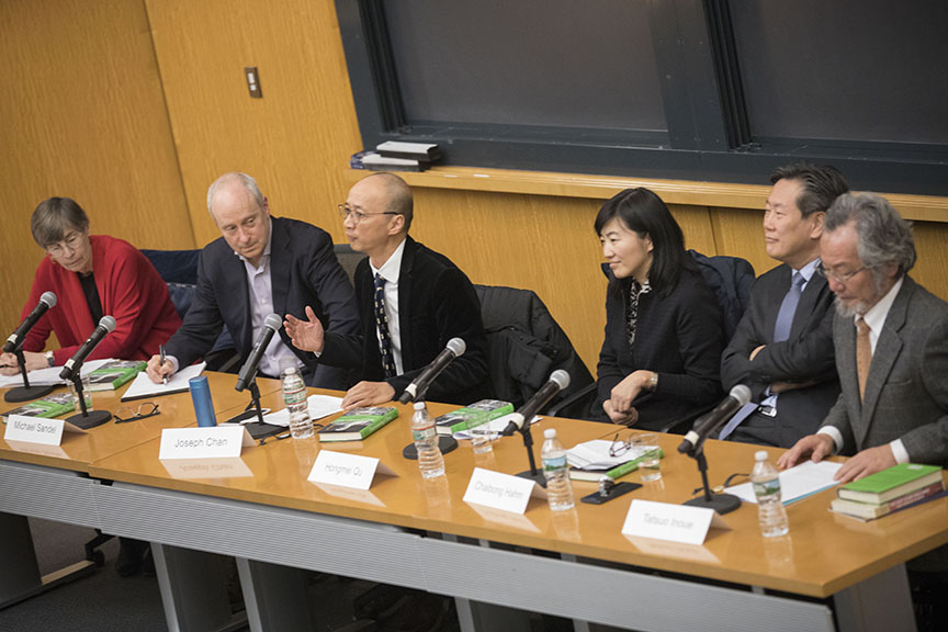 曲红梅教授受哈佛-燕京学社裴宜理(Elizabeth Perry)社长邀请在美国哈佛大学参加题为“遇见中国——迈克尔•桑德尔与中国哲学”的圆桌会议。2018年1月哈佛大学出版社出版了由当代著名哲学家、美国哈佛大学政府系教授迈克尔•桑德尔主编的《遇见中国——迈克尔•桑德尔与中国哲学》一书。书中收录了海内外研究中国哲学的名家就桑德尔的社群主义与中国哲学的关系所著的论文以及桑德尔本人的回应。为扩大桑德尔思想与中国哲学的对话,哈佛-燕京学社利用其每年一度的圆桌会议,进一步讨论相关话题。圆桌会议成员共六人:桑德尔教授本人、哈佛-燕京学社社长裴宜理教授、香港大学政治与公共管理系陈祖为教授、韩国峨山政策研究院主席咸在凤教授、日本东京大学法学院井上达夫教授以及海角视频