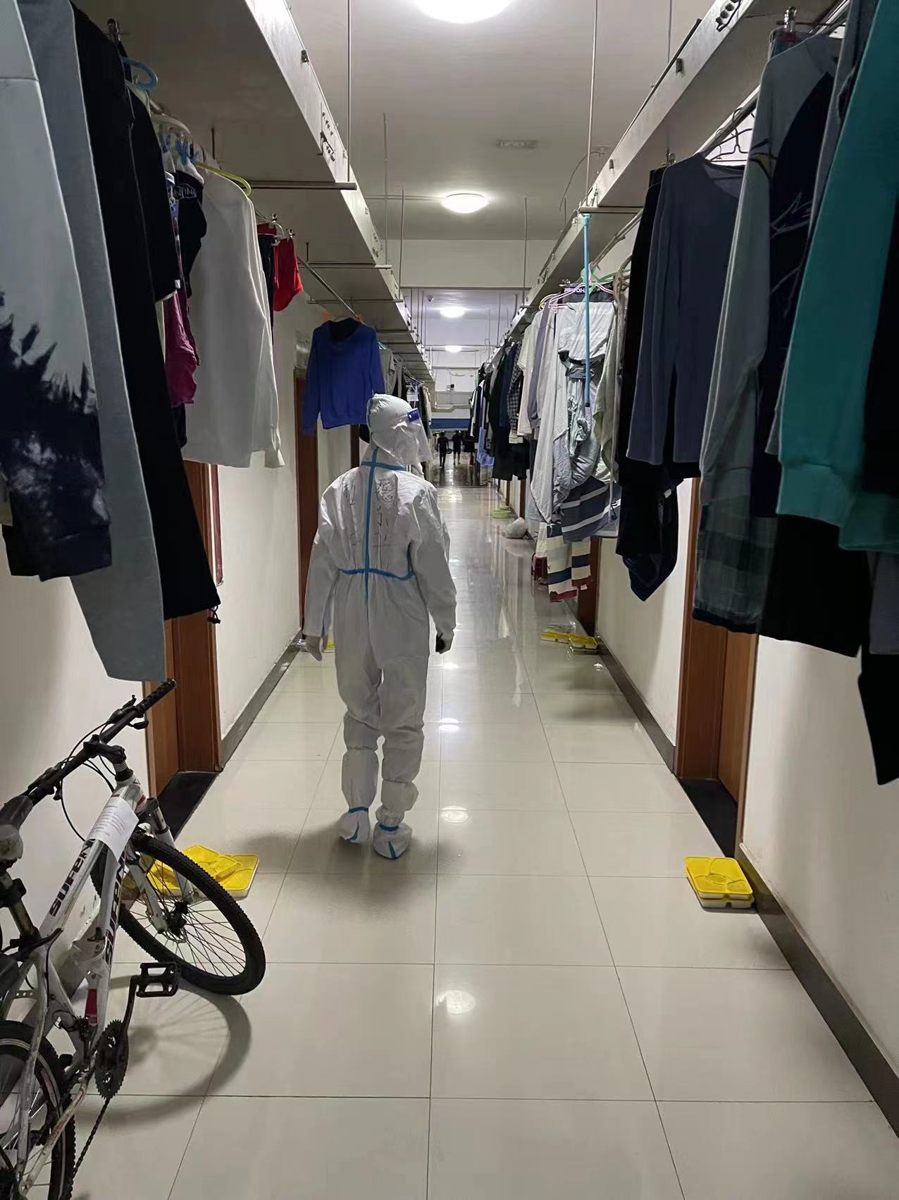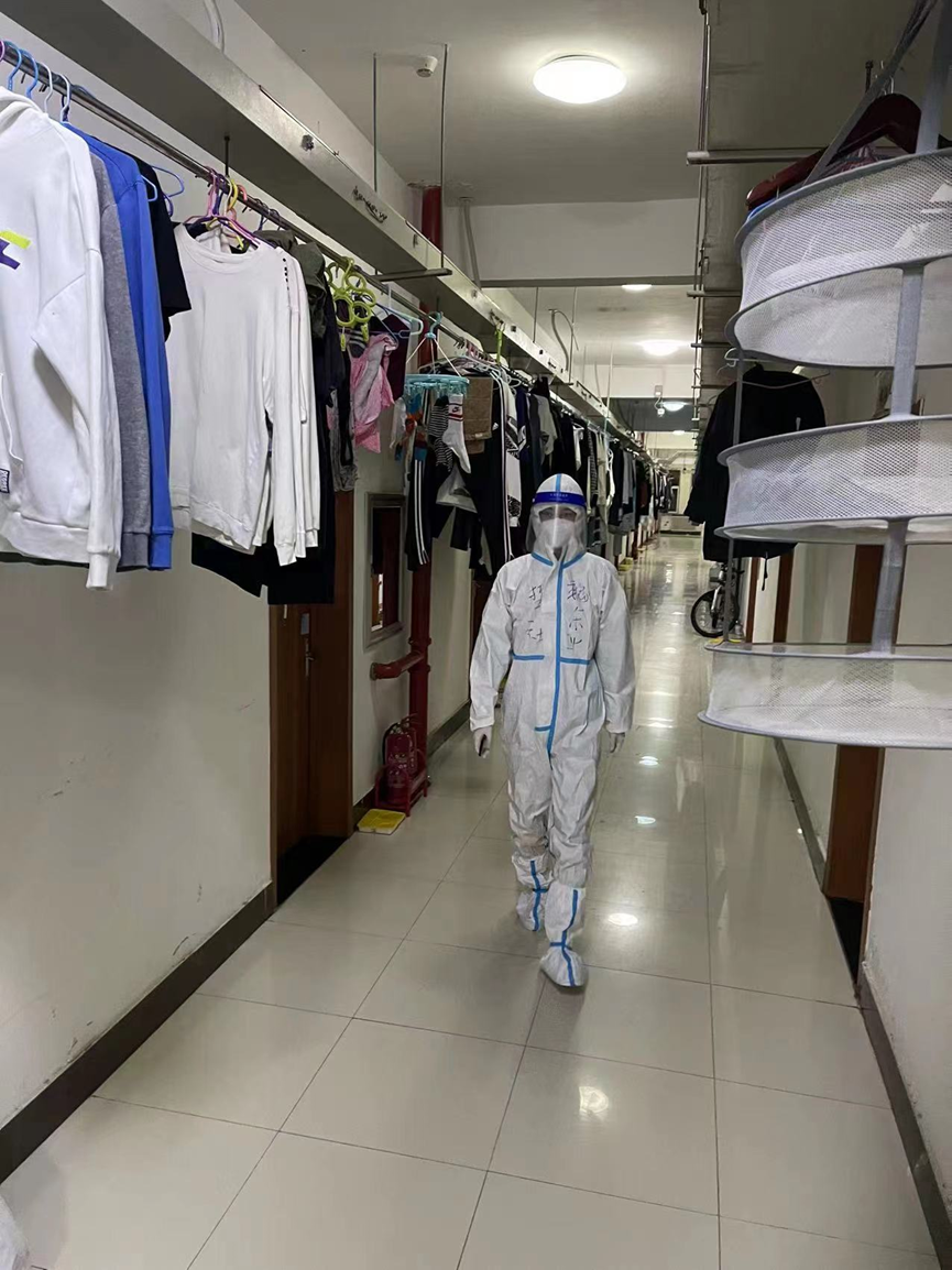 每天晚上10点,他都会准时进行公寓巡视,详细了解学生情况,有时他会顺便把学生需要的药品和考研材料送到寝室,还会叮嘱一些寝室晚上不要太吵以免影响其他同学休息。从疫情严峻时初来北二五楼,楼道几乎没人的沉寂到现在基本恢复正常,汗水与泪水是这段特殊岁月的平凡注脚。欢声笑语的校园终会再见,胜利就在不远的将来。