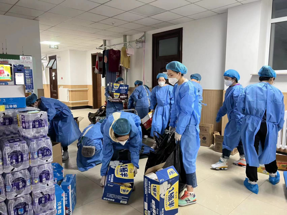 疫情最严重、寝室楼独立封闭管理期间,南五C公寓设置了“三横六纵”的志愿服务队,其中“六纵”志愿服务队负责将防疫物资及大家购买的物资在六个楼层间进行转运的工作,这也是我所在的志愿小分队。志愿工作机械并不繁琐,对于平常缺乏锻炼、走楼梯上六楼都会心脏狂跳的我们来说,一趟趟的物资转运成为了我们独特的活动方式。这期间最让我印象深刻的一件事,是在学校放开购买并发放可乐第一天,志愿队的每个人都浸染在即将喝到“快乐水”的兴奋中,平日里对搬运近二百箱饮用水的疲惫和畏难情绪都烟消云散了。