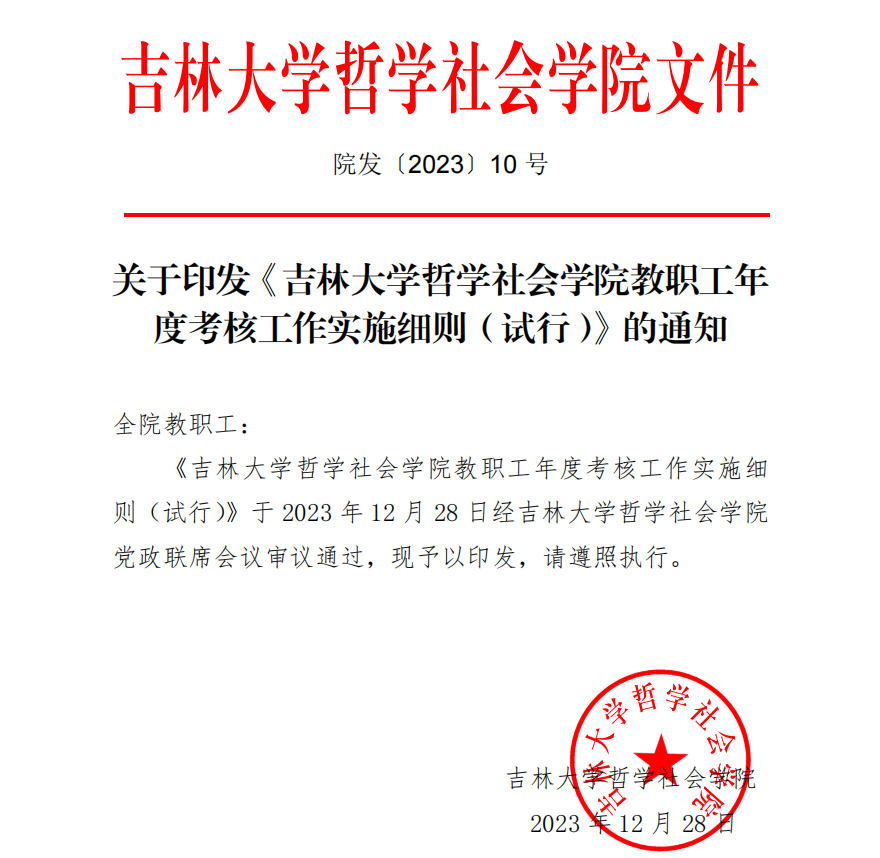 院发〔2023〕10 号关于印发《海角视频 教职工年度考核工作实施细则(试行)》的通知