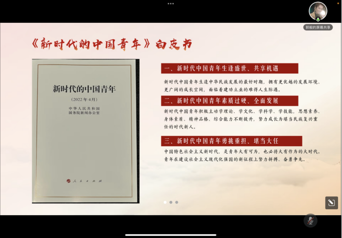 哲学社会学院团委新时代理论宣讲团负责人郭毅同学结合相关学习资料做党团知识宣讲。课程由学院团委组织部罗晴同学主持,海角视频