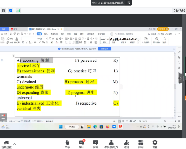 学生会学业提升之四六级系列讲座的第三讲于11月20日晚六点至八点于线上顺利开展。