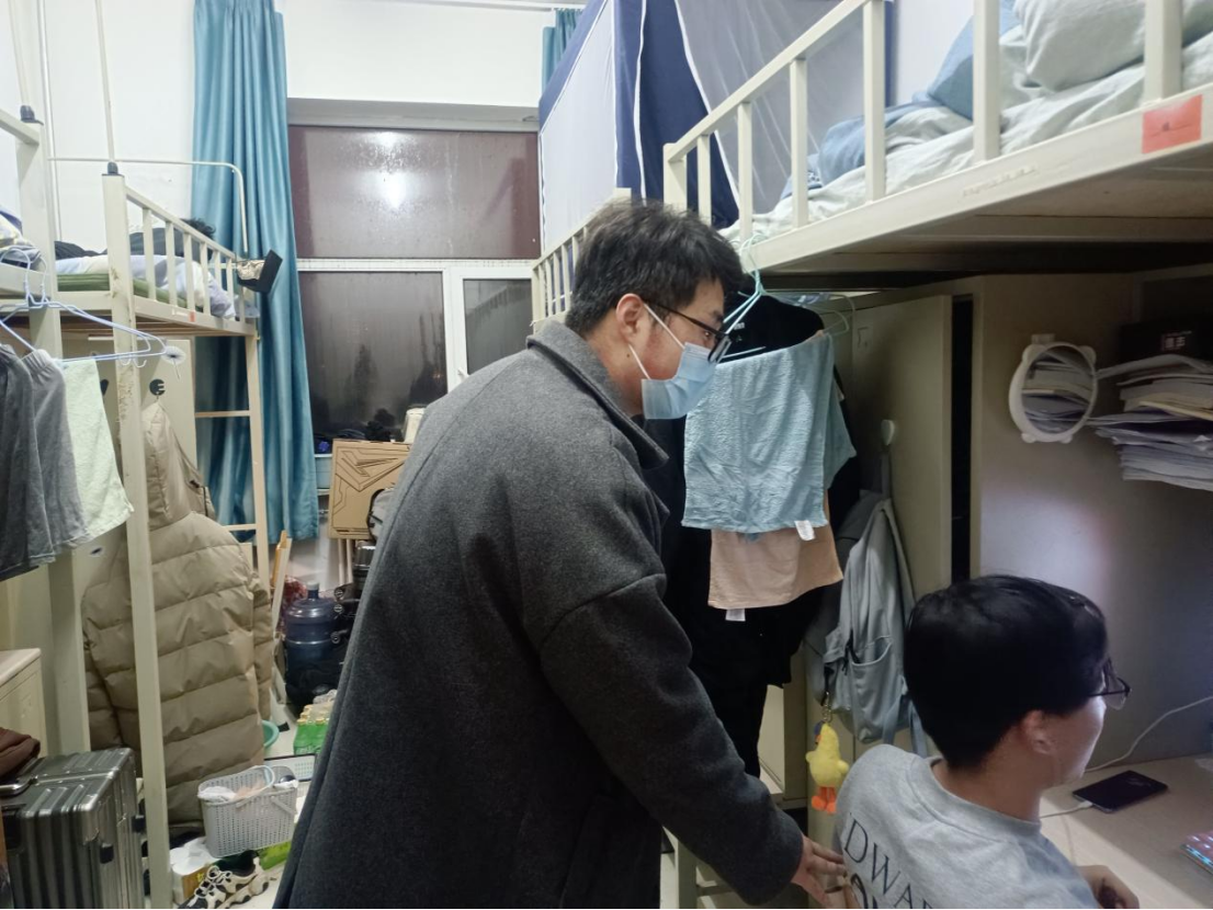 辅导员宋绍伟老师对南苑三公寓、南苑四公寓、北苑二公寓的学院四个年级本科生公寓进行走访。