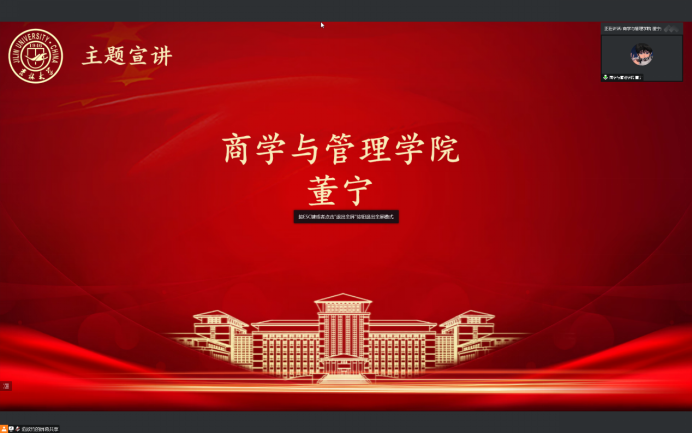马克思主义学院梁雯雯同学分享的主题是“上好马克思主义这门必修课,做坚定的青年马克思主义者”。她提到,青年信仰什么主义、捍卫什么主义,关系到国家和民族的前途命运,在中国共产党第二十次全国代表大会报告中,告诉了我们中国共产党为什么能,中国特色社会主义为什么好,归根到底是马克思主义行。我们当代青年应当坚定信仰马克思主义,自觉践行马克思主义,讲好马克思主义中国化故事,让青春再全面建设社会主义现代化国家的火热实践中绽放绚丽之花。