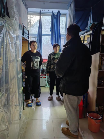 进入宿舍,宋老师就目前学校的疫情防控管理要求与同学们做了细致交流,提醒同学们树立健康意识、做好日常健康监测,体温异常及时上报就医,外出时落实个人防护,规范佩戴口罩。