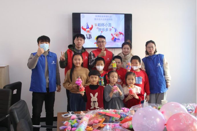 汤畅、陈正康、孟维杰将自身所学知识与实践相结合,以“培养审美观念,提高动手能力”为主题,带领小朋友们进行捏橡皮泥、剪纸、制作风车等有趣活动。专注而谨慎,细致而精美,小朋友们手捧自己的劳动成果,在欢声笑语中满载而归。