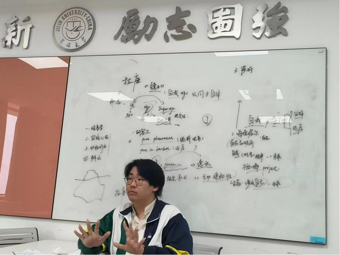 首先,刘书源同学就《镜子阶段》一书进行分享,从联系、批判弗洛伊德相关哲学思想出发,讲解关于自我、本我与超我相区分的理论,并从现象学、实验心理学、动物行为学、辩证法四个角度尝试阐述拉康在《镜子阶段》一书中的哲学思想。