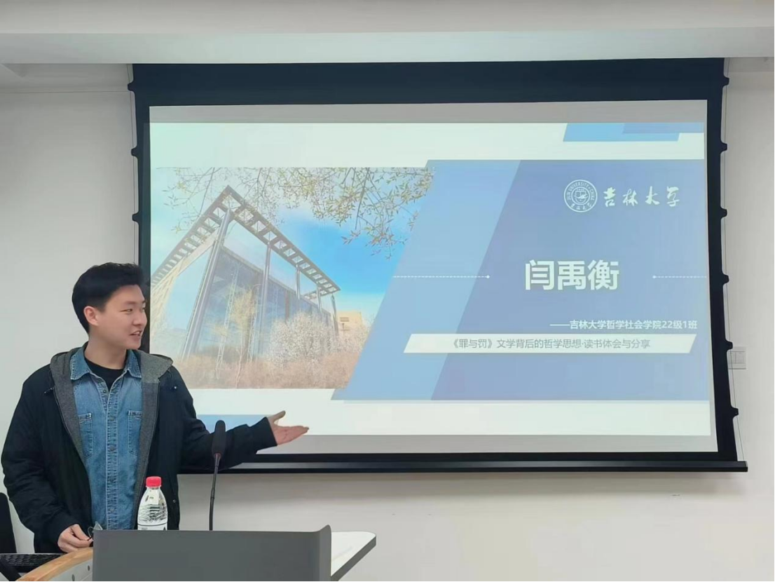 接下来,闫禹衡同学结合《罪与罚》一书的文学面向,和同学们探讨了背后有关俄罗斯民族文化、戏剧内核、道德正义等问题,就文学性形式与哲学性内容进行了穿插式地叙述,引发了同学们的研讨热情。