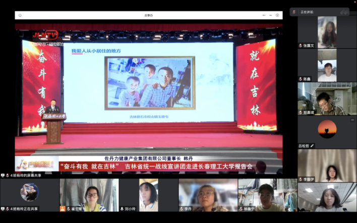 组织同学们通过腾讯会议集中观看了由省委统战部、省委教育工委和省人社厅共同举办的“奋斗有我,就在吉林”宣讲报告会。本次宣讲会旨在通过统一战线典型人物讲述他们与吉林振兴发展同频共振的奋斗经历和人生感悟,为大学生在就业创业选择上提供更宽的视角和更多的参考;通过人社部门现场解读就业创业政策,为高校毕业生提供精准服务,助力高校毕业生留吉就业创业,实现与吉林共发展。