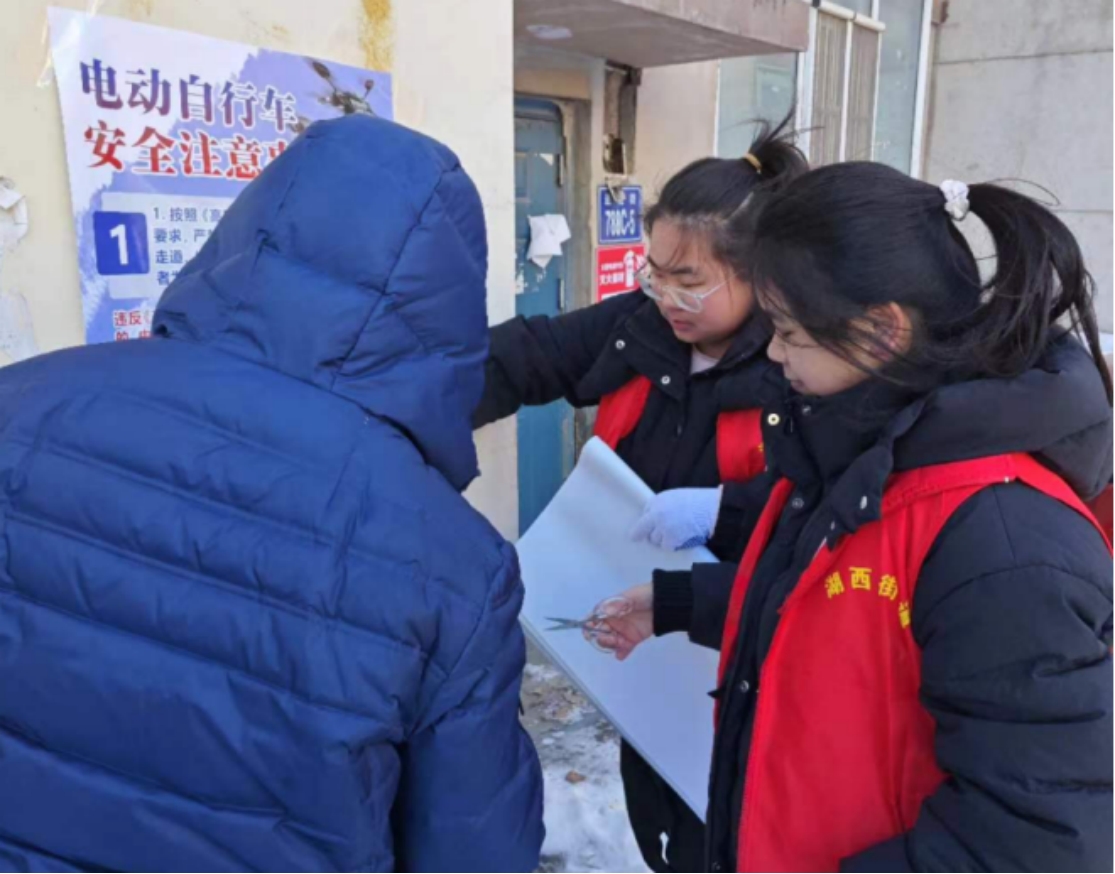 “学雷锋”志愿服务团队一行十余人,在学生负责人的带领下,前往长春市朝阳区湖西街道集安社区开展志愿服务活动。