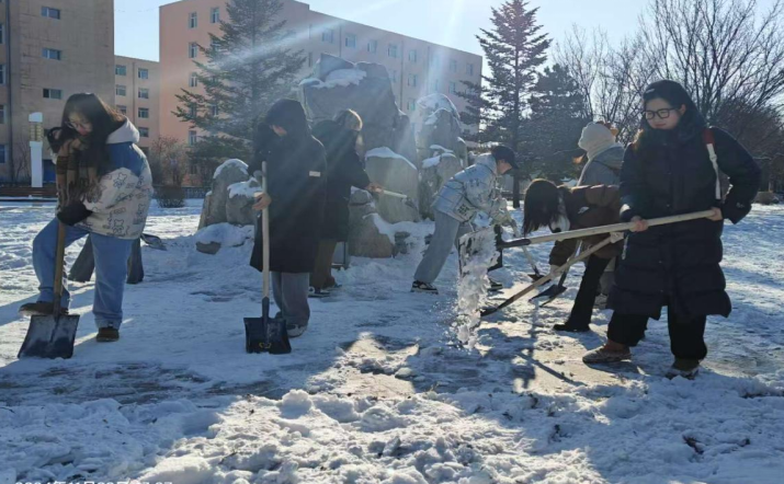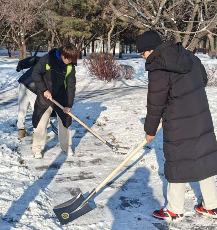 团委组织开展扫雪实践育人活动。本次活动由学院本科生辅导员张鑫鹏老师带领,学院入团积极分子参加活动。