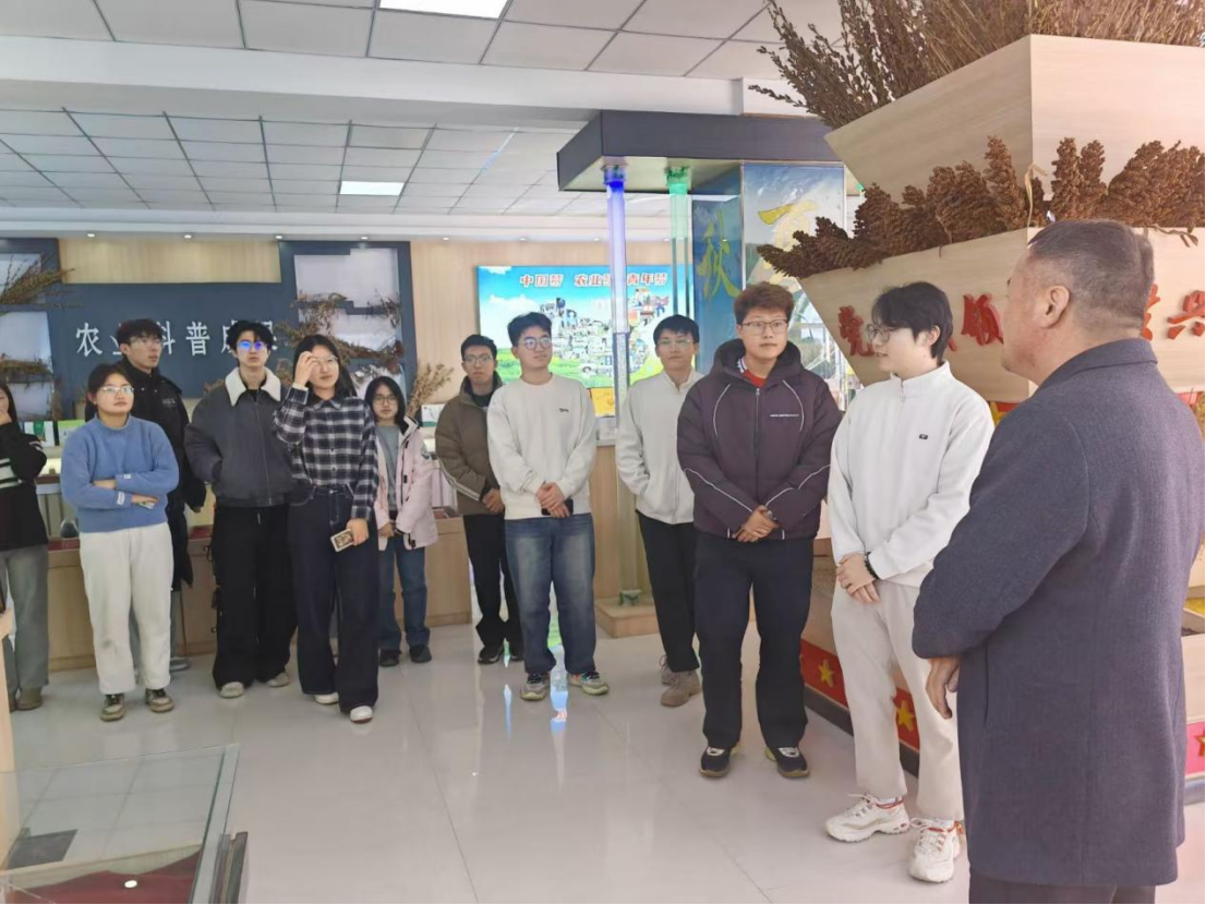 下午,在新洋丰现代农业有限公司总经理毕见超的讲解带领下,实践团参观了位于新洋丰总部一楼的乡村振兴展厅。通过实地观摩和讲解,团队成员对科技小院“六位一体”模式、现代农业科技应用以及农业产业化发展有了更深入的理解。团队依次参观了乡村振兴展厅中的玉米、大米、小米、绿豆粉条等特色农产品样品,切实感受了科技小院模式对于现代化农业生产的助益。通过调研,同学们也认识到:“酒香也怕巷子深”,好的产品是需要推广的,数商兴农通过推进产销一体化,让百姓收获到了切切实实的利益。