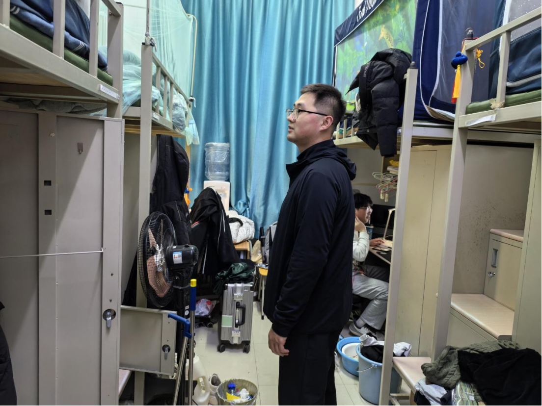在寝室中,朱大卫老师向同学们亲切交流学习生活情况,详细了解同学们的个人基本信息和未来发展规划,同时认真宣讲安全知识,提醒同学们严禁在寝室使用大功率违规电器,外出务必做到断电断水;严禁夜不归寝,不要留宿外人。结合在走访过程中存在的卫生问题和安全隐患,朱大卫老师当场向同学们指出,并指导同学们进行马上整改。