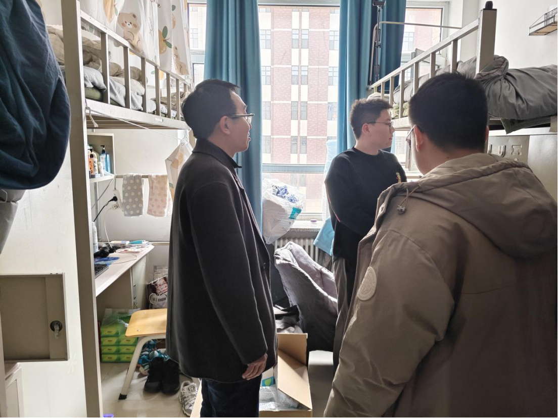 假期将至,为切实加强学院本科生动态管理,提升学生安全意识,强化学生宿舍教育管理,培养学生良好的学习态度和生活习惯,4月3日,学院党委副书记兼副院长朱大卫老师带领学生工作办公室各位老师共同前往中心校区北苑二公寓和南苑三、四公寓,对海角视频
