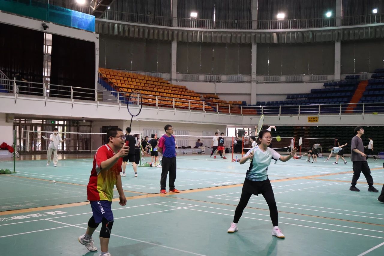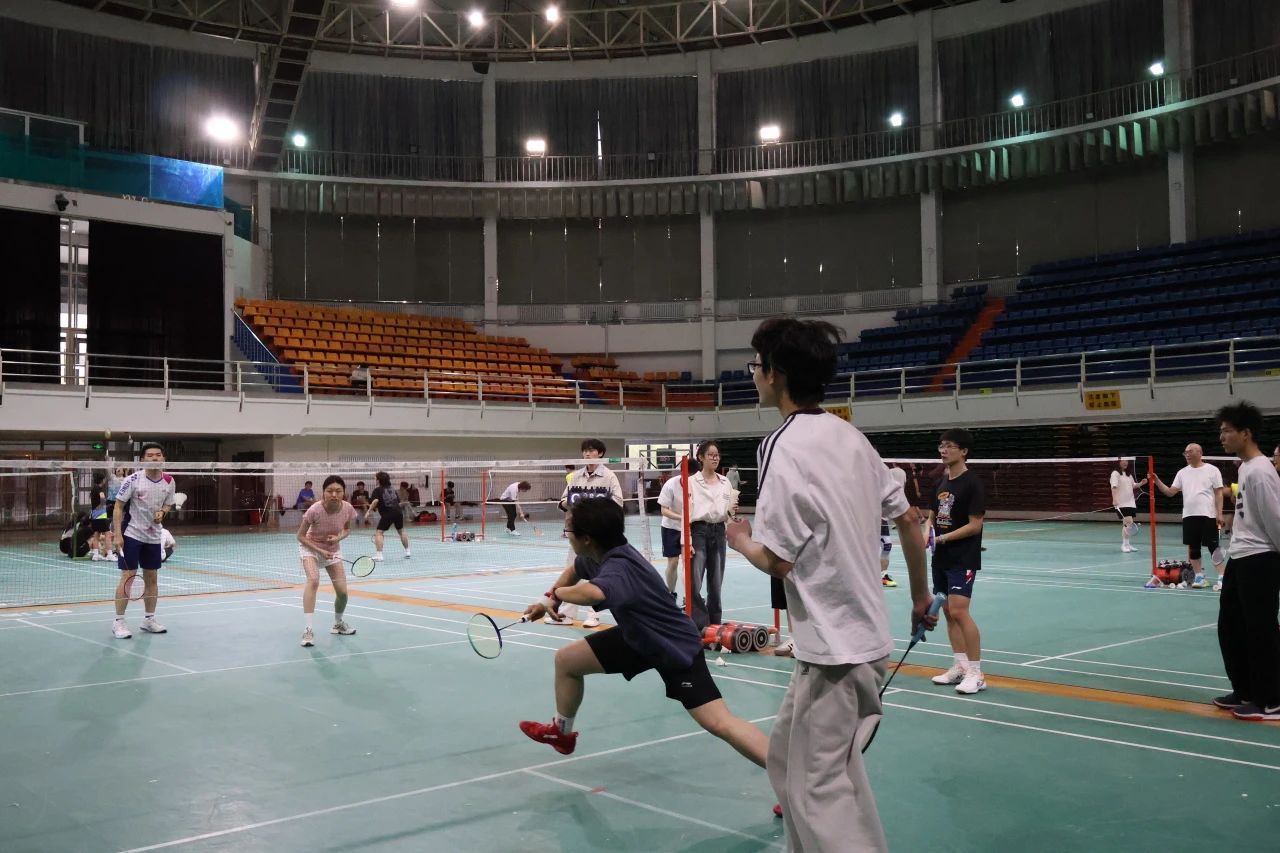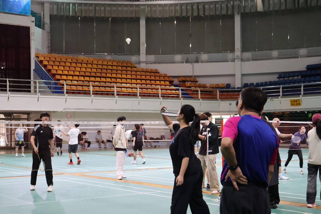 场馆内弥漫着紧张而专注的气息。师生们或独自热身,或三两切磋。有人仔细调整装备,有人凝神练习挥拍,每一个动作都在为即将到来的对决积蓄力量。空气中涌动着无声的斗志,仿佛连飞旋的羽毛球都在期待这场智慧与激情的碰撞。