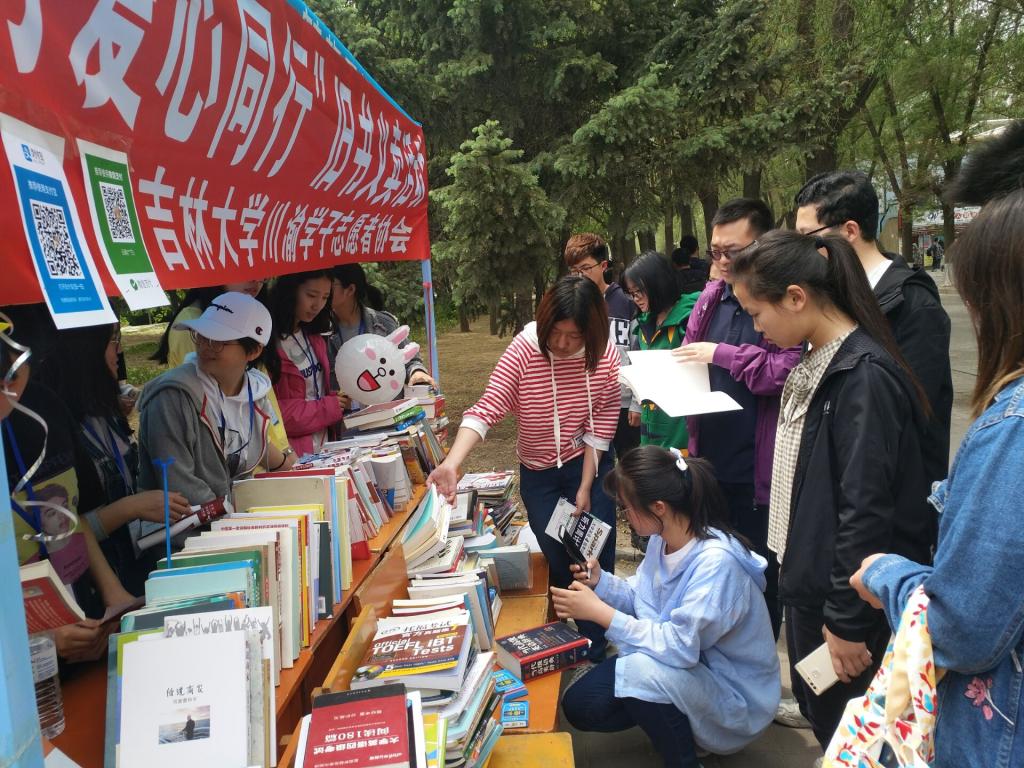 经过一个月左右的努力,协会的志愿者们搜集到了由中心校区文苑、南苑、北苑等六个公寓楼同学们捐赠的近千本图书。书籍种类颇多,包括文理工农医等各门类教材、小说杂志和各种资料。在活动当天,这些书籍被工作人员分类整理并整齐的摆放在体育馆前的空地上静待同学们前来选购。该活动以“以旧换心,环保与爱心同行”为主题,通过“买书籍,献爱心”的形式进行,即每购买一本书,就能够用所得资金购置相关生活用品捐献给长春市幸福长寿院。